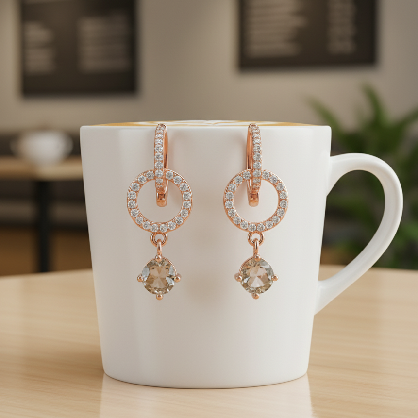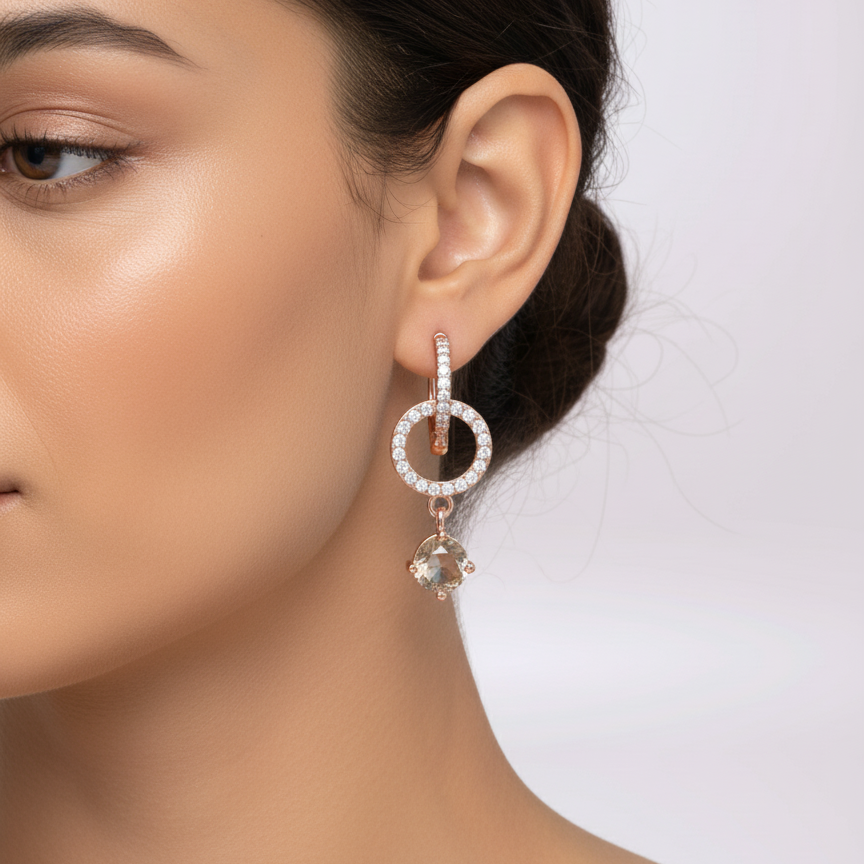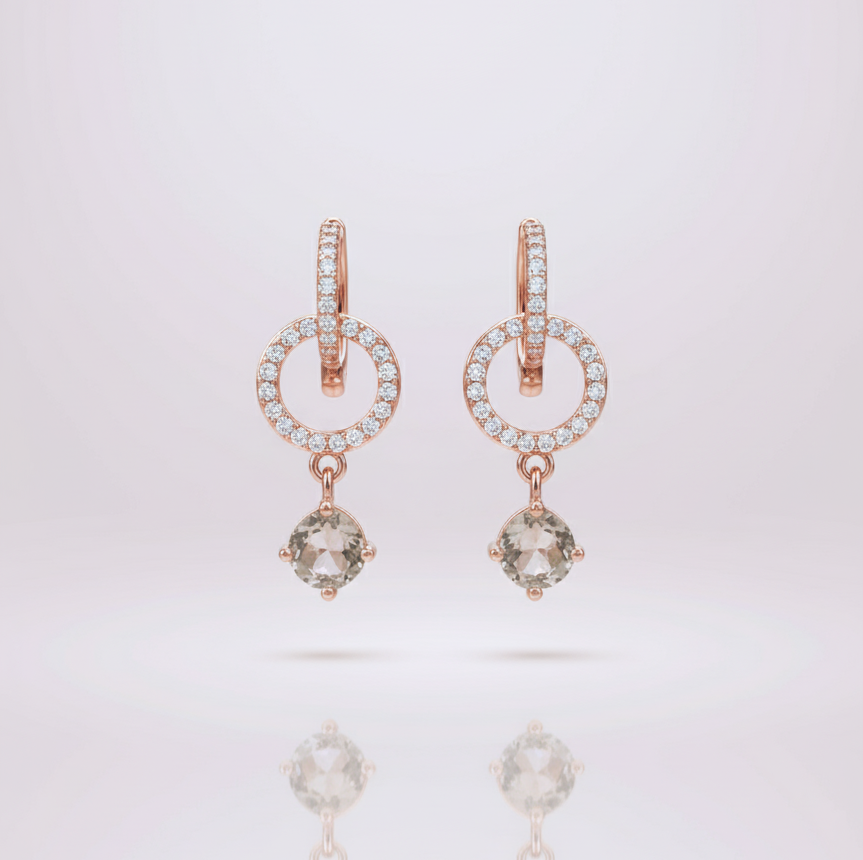 Unveil timeless sophistication with these captivating earrings. Each hoop, adorned with brilliant facets, cradles a mesmerizing, faceted drop that catches the light with every turn. Crafted for effortless grace, these earrings are designed to elevate any ensemble, from everyday chic to special occasion glamour. A perfect blend of modern design and classic allure, they promise to add a radiant touch to your personal style.