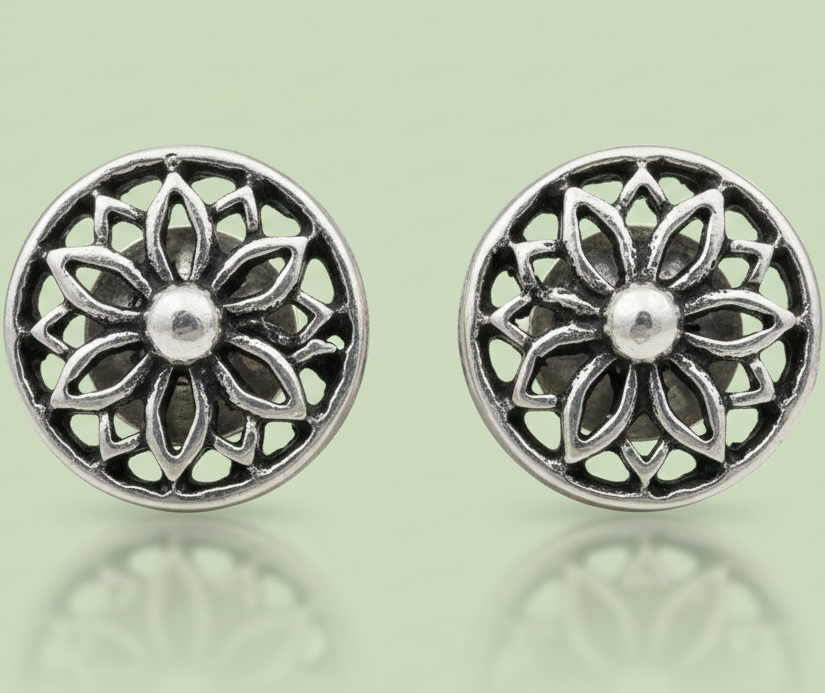 These exquisite Blossom Luna earrings feature a captivating floral design, meticulously crafted to showcase intricate details and a brilliant metallic shine. Perfect for adding a touch of sophisticated elegance to any outfit, their unique pattern and luxurious finish make them ideal for both everyday wear and special occasions. The subtle interplay of light and shadow highlights their artisanal quality, ensuring you stand out with understated glamour.